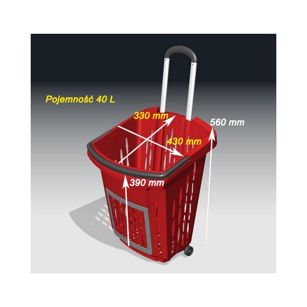 KOSZYK SKLEPOWY NA KÓŁKACH Z WYSUWANĄ RĄCZKĄ 40 L